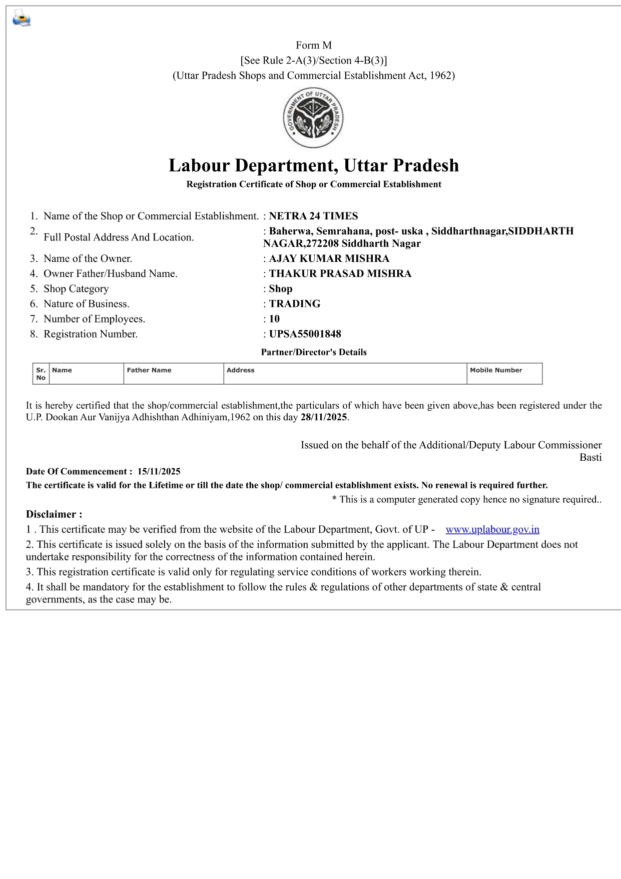 Registration Certificate
