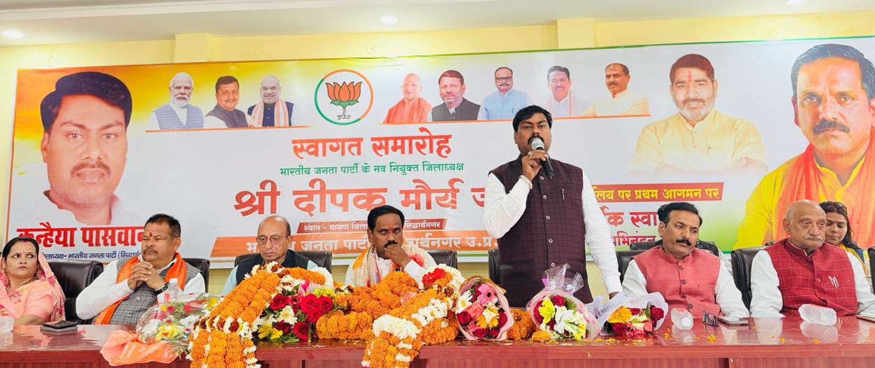 सिद्धार्थनगर भारतीय जनता पार्टी के नवनियुक्त जिलाध्यक्ष दीपक मौर्य के भाजपा जिला कार्यालय पर प्रथम आगमन पर निवर्तमान जिलाध्यक्ष कन्हैया पासवान की अध्यक्षता में भव्य स्वागत समारोह का आयोजन किया गया। कार्यकर्ताओं ने गर्म जोशी के साथ नवनियुक्त जिलाध्यक्ष दीपक मौर्य का भव्य स्वागत अभिनंदन किया। कार्यक्रम में सर्वप्रथम निवर्तमान जिलाध्यक्ष कन्हैया पासवान ने जिलाध्यक्ष दीपक मौर्य का स्वागत अभिनंदन कर उनको उज्जवल कार्यकाल की शुभकामनाएं दी। कार्यक्रम में स्वागत समारोह को संबोधित करते हुए नवनियुक्त जिलाध्यक्ष दीपक मौर्य ने कहा भारतीय जनता पार्टी शीर्ष नेतृत्व में जिस तरह मुझ जैसे सामान्य से कार्यकर्ता को जिलाध्यक्ष की जिम्मेदारी दी है वह भारतीय जनता पार्टी में ही संभव है उसके लिए मै शीर्ष नेतृत्व का आभार प्रकट करता हूं। निश्चित रूप से पार्टी ने जिस विश्वास के साथ मुझे जिम्मेदारी दी है उस पर मैं खरा उतरने का प्रयास करूंगा। कार्यक्रम में उपस्थित सांसद जगदंबिका पाल,विधायक बांसी राजा जय प्रताप सिंह,पूर्व मंत्री उत्तर प्रदेश सरकार डॉ सतीश द्विवेदी व पूर्व विधायक डुमरियागंज राघवेंद्र सिंह ने अपने उद्बोधन से जिलाध्यक्ष दीपक मौर्य को सम्मानित करते हुए उनको उज्जवल कार्यकाल की शुभकामनाएं दिया। वहीं कार्यक्रम की अध्यक्षता कर रहे निवर्तमान जिलाध्यक्ष कन्हैया पासवान ने कहा पार्टी शीर्ष नेतृत्व द्वारा जिस तरह से जनपद सिद्धार्थनगर की जिम्मेदारी एक अनुभवी और समर्पित कार्यकर्ता को दी गई है निश्चित रूप से सराहनीय है दीपक मौर्य को संगठन कार्य का एक लंबा अनुभव निश्चित रूप से उनके अनुभव से पार्टी और शसक्त होगी।