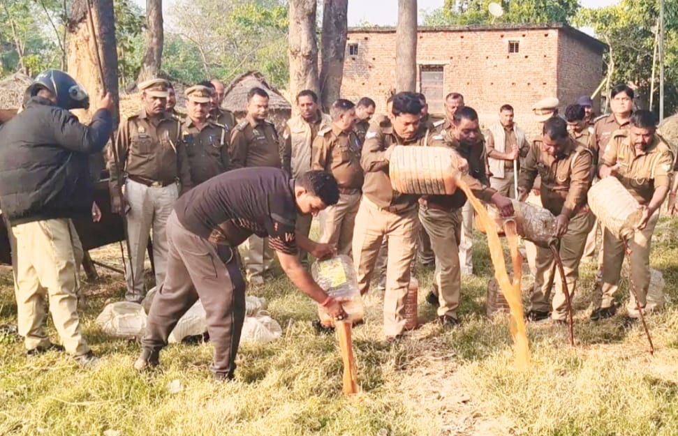 आबकारी और पुलिस की संयुक्त टीम ने शोहरतगढ़़ व मिश्रौलिया में 75 लीटर अवैध शराब बरामद, 500 किलो लहन किया नष्ट