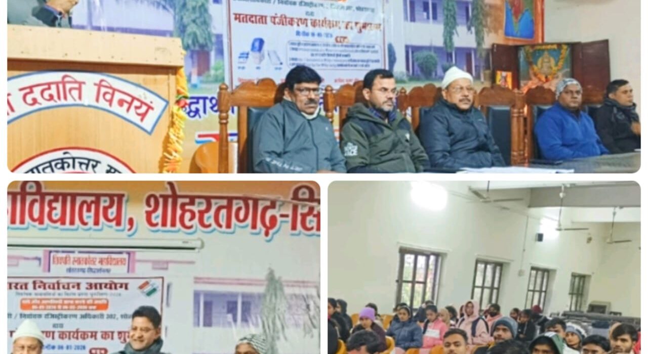 निर्वाचन आयोग के निर्देशानुसार मंगलवार को शिवपति स्नातकोत्तर महाविद्यालय शोहरतगढ़ में विशेष मतदाता जागरूकता कार्यक्रम का आयोजन किया गया। कार्यक्रम के मुख्य अतिथि उपजिलाधिकारी शोहरतगढ़ विवेकानन्द मिश्रा रहे, जबकि कार्यक्रम की अध्यक्षता महाविद्यालय के प्राचार्य प्रोफेसर अरविन्द कुमार सिंह ने की। यह आयोजन राष्ट्रीय सेवा योजना की स्वामी विवेकानन्द एवं रानी लक्ष्मीबाई इकाईयों के संयुक्त तत्वावधान में सम्पन्न हुआ। प्राचार्य प्रो0 सिंह ने अपने सम्बोधन में युवाओं को लोकतन्त्र की मजबूती हेतु मतदान के महत्व को विस्तार से समझाया। मुख्य अतिथि ने निर्वाचन प्रक्रिया, मतदाता सूची में नाम जोड़ने की विधि एवं ईसीआईनेट ऐप के प्रयोग पर प्रकाश डाला। उन्होंने छात्र-छात्राओं से अपील की कि वे 18 वर्ष की आयु पूर्ण करते ही मतदाता सूची में नाम दर्ज कराएं। कार्यक्रम का संचालन रानी लक्ष्मीबाई इकाई के कार्यक्रम अधिकारी डॉ0 ए0के0 सिंह ने किया। प्राध्यापक डॉ0 धर्मेन्द्र सिंह, डॉ0 विनोद कुमार सिंह, डॉ0 राम किशोर सिंह, डॉ0 अजय कुमार सिंह, शशि शेखर शिष्ट पाल सिंह सहित तहसील शोहरतगढ़़ के चन्द्र प्रताप सिंह की उपस्थिति उल्लेखनीय रही। छात्र-छात्राओं में सबा, शिवांगी, विशाल, सुग्रीव, आशीष आदि ने सक्रिय सहभागिता निभाई। कार्यक्रम में मतदाता पंजीकरण हेतु फार्म-6 एवं घोषणा पत्र वितरित करके पंजीकरण की प्रक्रिया को भी समझाया गया। शिक्षण संस्थानों में कोऑर्डिनेटर नियुक्त कर पंजीकरण अभियान चलाने की योजना साझा की गई। एनएसएस एवं एनसीसी के माध्यम से प्रचार-प्रसार की रणनीति पर भी चर्चा हुई। कार्यक्रम का उद्देश्य अधिक से अधिक नये मतदाताओं को सूचीबद्ध करना रहा।