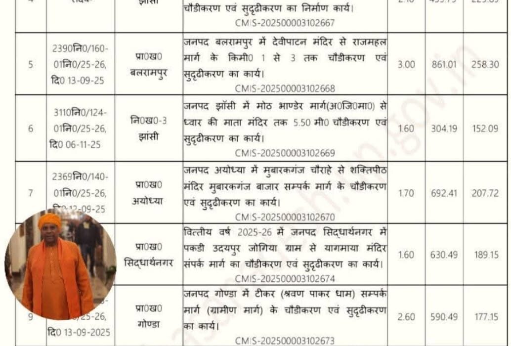 विधानसभा क्षेत्र कपिलवस्तु के जोगिया ब्लॉक अन्तर्गत लोक निर्माण विभाग द्वारा पकड़ी-उदयपुर-जोगिया से योगमाया मन्दिर सम्पर्क मार्ग के चौड़ीकरण एवं सुदृढ़ीकरण कार्य हेतु 6 करोड़ 30 लाख 49 हजार रुपये की स्वीकृति प्रदान की गई है। इस महत्वपूर्ण स्वीकृति से क्षेत्र में आवागमन सुगम होगा तथा स्थानीय नागरिकों, श्रद्धालुओं एवं व्यापारियों को बड़ी राहत मिलेगी। इस अवसर पर विधायक श्यामधनी राही ने कहा कि यह परियोजना क्षेत्र के समग्र विकास की दिशा में एक महत्वपूर्ण कदम है। इससे न केवल सड़क सुरक्षा में सुधार होगा, बल्कि ग्रामीण एवं धार्मिक पर्यटन को भी बढ़ावा मिलेगा। उन्होंने इस जनहितकारी निर्णय के लिए मुख्यमंत्री योगी आदित्यनाथ के प्रति कपिलवस्तु विधानसभा की देवतुल्य जनता जनार्दन की ओर से हृदय से आभार व्यक्त किया तथा कहा कि प्रदेश सरकार निरन्तर जनकल्याण एवं आधारभूत संरचना के विकास के लिए प्रतिबद्ध है।