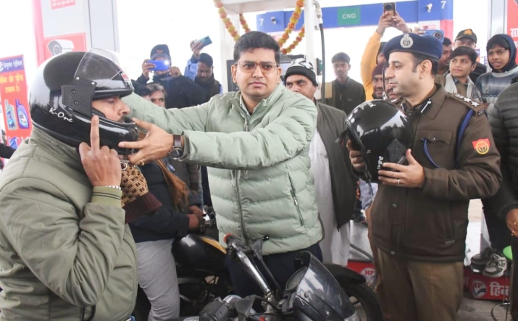 जिलाधिकारी व पुलिस अधीक्षक सिद्धार्थनगर ने संयुक्त रूप में शुक्रवार को चांद मेकरानी हिन्दुस्तान पेट्रोलियम मधुबेनिया नौगढ़ पर निःशुल्क हेलमेट वितरण किया। इस दौरान दोनों अधिकारियों ने अपील किया कि बिना हेलमेट के दो पहिया वाहन न चलाये। हेलमेट पहने और सुरक्षित रहे। साथ ही “नो हेलमेट नो फ्यूल” (बिना हेलमेट के ईंधन नहीं) नियम का कड़ाई से अनुपालन सुनिश्चित करते हुए पेट्रोल पम्पों पर यातायात नियमों से सम्बन्धित पम्पलेट वितरित कर लोगों को जागरूक किया गया। इस अवसर पर डीएम ने कहा कि हेलमेट का उपयोग सड़क दुर्घटनाओं में जानमाल की रक्षा करने का सबसे सरल एवं प्रभावी उपाय है। वहीं एसपी ने कहा कि “नो हेलमेट नो फ्यूल” अभियान से दोपहिया वाहन चालकों में हेलमेट उपयोग की आदत विकसित होगी, जिससे दुर्घटनाओं में कमी आयेगी। इस कार्यक्रम के दौरान एआरटीओ सिद्धार्थनगर सुश्री प्रियम्बदा सिंह, डीएसओ देवेन्द्र प्रताप सिंह, सीओ सदर विश्वजीत सौर्यवान (आईपीएस), यातायात पुलिस सिद्धार्थनगर एवं अन्य सम्बन्धित अधिकारी सहित आमजन की उपस्थिति रहीं।