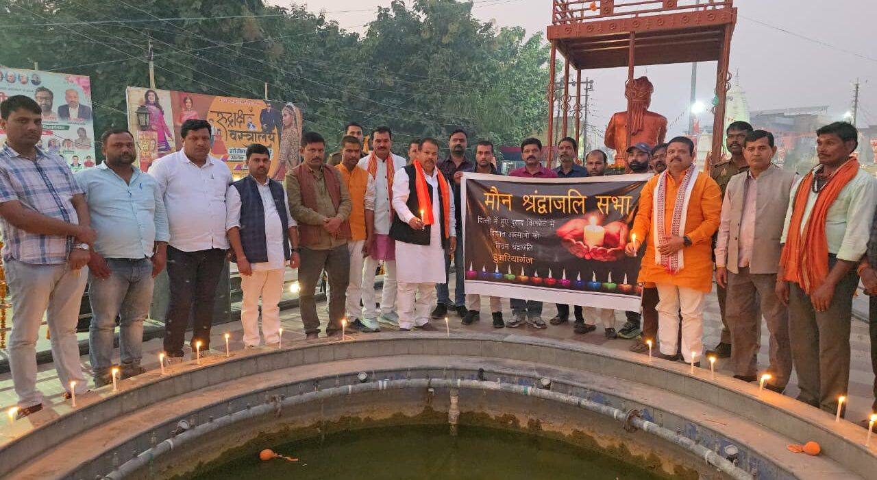 डुमरियागंज में दिल्ली आतंकी धमाके में मारे गए लोगों को मोमबत्ती जलाकर दी गई श्रद्धांजलि