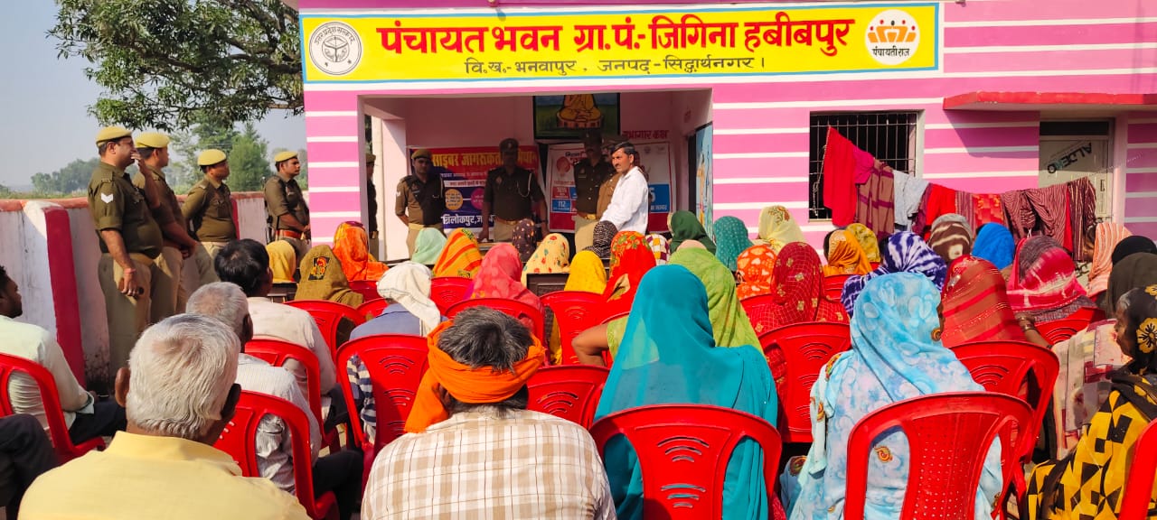 पुलिस अधीक्षक सिद्धार्थनगर डॉ0 अभिषेक महाजन द्वारा महिलाओं एवं बालिकाओ की सुरक्षा में चलाए जा रहे अभियान के तहत दिनांक 12/11/2025 को अपर पुलिस अधीक्षक महोदय प्रशांत कुमार प्रसाद के पर्यवेक्षण में क्षेत्राधिकारी डुमरियागंज बृजेश कुमार वर्मा तथा थानाध्यक्ष रामदेव के कुशल नेतृत्व में मिशन शक्ति के अन्तर्गत महिला सशक्तिकरण कार्यक्रम तहत ग्राम सभा जिगिना हबीबपुर में मिशन शक्ति के सम्बन्ध में विभिन्न सार्वजनिक स्थानों पर जाकर बालिकाओं/महिलाओं को मिशन शक्ति के तहत सरकार के विभिन्न सरकारी योजनाओं के बारे मे जैसे कि प्रधानमंत्री मातृ वंदना योजना व बहू सम्मेलन अभियान,मुख्यमंत्री सामूहिक विवाह योजना,रानी लक्ष्मी बाई बाल एवं महिला सम्मान कोष, नारी शक्ति वंदन अधिनियम,मातृ शक्ति को सम्बल,निराश्रित महिला पेंशन योजना,मुख्यमंत्री कन्या सुमंगला योजना आदि अन्य योजनाओ से संबंधी जानकारी को बताया गया व जागरूक किया गया मिशन शक्ति फेज 5.0 कार्यक्रम महिला सशक्तिकरण,एंटीरोमियो अभियान एवं साइबर अपराध सुरक्षा कार्यक्रम के अंतर्गत जानकारी देते हुए महिला सम्वन्धी अपराध पर अंकुश लगाने हेतु जारी हेल्प लाइन *1090 वुमेन पावर लाइन, 181 महिला हेल्प लाइन, 1076 मुख्यमंत्री हेल्प लाइन, 112 पुलिस हेल्प लाइन, 1098 चाईल्ड केयर लाइन, 108 एम्बुलेंस हेल्प लाइन, 101 अग्निशमन हेल्प लाइन, 14567 एल्डर हेल्पलाइन, 1930 साइबर हेल्पलाइन नंबर नए कानून के बारे में जानकारी दी गई।