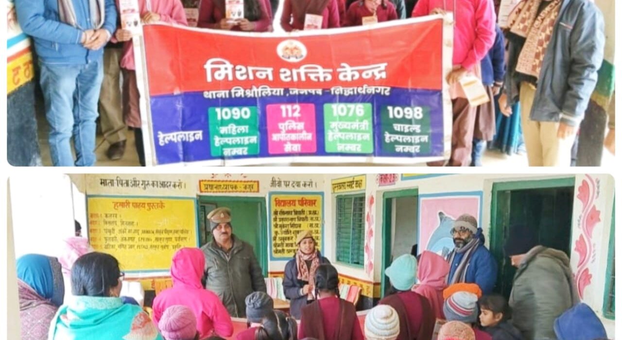 पुलिस अधीक्षक सिद्धार्थनगर डॉ0 अभिषेक महाजन द्वारा महिलाओं एवं बालिकाओं की सुरक्षा में चलाए जा रहे अभियान के तहत बुधवार को अपर पुलिस अधीक्षक सिद्धार्थनगर प्रशान्त कुमार प्रसाद के पर्यवेक्षण में व क्षेत्राधिकारी इटवा प्रवीण कुमार तथा प्रभारी निरीक्षक मिश्रौलिया राजेश कुमार तिवारी के कुशल नेतृत्व में मिशन शक्ति 5.0 के अन्तर्गत महिला सशक्तिकरण कार्यक्रम तहत उच्चतर माध्यमिक विद्यालय में महुई में मिशन शक्ति 5.0 के सम्बन्ध में बालिकाओं/महिलाओं को मिशन शक्ति के तहत सरकार के विभिन्न सरकारी योजनाओं के बारें में जैसे कि प्रधानमंत्री मातृ वन्दना योजना व बहू सम्मेलन अभियान, मुख्यमंत्री सामूहिक विवाह योजना, रानी लक्ष्मी बाई, बाल एवं महिला सम्मान कोष, नारी शक्ति वन्दन अधिनियम, मातृ शक्ति को सम्बल, निराश्रित महिला पेंशन योजना, मुख्यमंत्री कन्या सुमंगला योजना आदि अन्य योजनाओ से सम्बन्धी जानकारी को बताया गया तथा जागरूक किया गया। वहीं विभिन्न हेल्प लाइन नम्बर-112 पुलिस आपातकालीन सेवा, 1090 वूमेन पावर हेल्प लाइन,1076 मुख्यमंत्री हेल्प लाइन,108 एम्बुलेंस सेवा,1930 साइबर अपराध हेल्प लाइन, 1098 चाइल्ड हेल्प लाइन, 102 स्वास्थ्य सेवा, 181 वीमेन हेल्प लाइन, 101अग्निशमन सेवा दण्ड से न्याय की ओर व नये आपराधिक कानून के प्रति जागरूक किया गया तथा निबन्ध प्रतियोगिता भी करायी गयी। इस दौरान मिशन शक्ति टीम में उप निरीक्षक श्याम कन्हैया दूबे, कांस्टेबल अरविन्द यादव, महिला आरक्षी अनुपम उपस्थित रहीं।