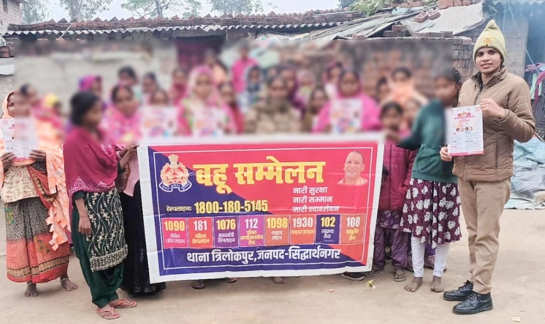पुलिस अधीक्षक सिद्धार्थनगर डॉ0 अभिषेक महाजन द्वारा महिलाओं के सुरक्षा एवं जागरूकता अभियान” के सम्बन्ध में दिये गये निर्देश के क्रम में एवं अपर पुलिस अधीक्षक सिद्धार्थनगर प्रशान्त कुमार प्रसाद व क्षेत्राधिकारी डुमरियागंज बृजेश कुमार वर्मा के कुशल पर्यवेक्षण में एवं थानाध्यक्ष त्रिलोकपुर चन्द्रकान्त पाण्डेय के निर्देशन में मंगलवार को थाना क्षेत्र के ग्राम नेहतुआ की बहू का जो थाने तक नहीं आ सकती हैं, उनको चौपाल लगाकर बहु सम्मेलन कर जागरूक किया। वहीं महिलाओं के साथ होने वाले अपराध से बचने के बारें में जानकारी दी गयी। मुख्यमंत्री उत्तर प्रदेश सरकार द्वारा उत्तर प्रदेश के सभी थानों पर स्थापित मिशन शक्ति केन्द्र जहां पर अपनी समस्या को दर्ज करा सकती हैं, के बारें में जानकारी दी गई। वहीं मिशन शक्ति फेज 5.0 के विषय मे महिलाओं को महिला सम्बन्धी अपराध पर अंकुश लगाने हेतु जारी हेल्प लाइन 1090 वुमेन पावर लाइन, 181 महिला हेल्प लाइन, 1076 मुख्यमंत्री हेल्प लाइन, 112 पुलिस हेल्प लाइन, 1098 चाईल्ड केयर लाइन, 108 एम्बुलेंस हेल्प लाइन, 101 अग्निशमन हेल्प लाइन, 14567 एल्डर हेल्पलाइन, 1930 साइबर हेल्पलाइन नम्बर नये कानून के बारें में जानकारी दी गई। इस दौरान थाना त्रिलोकपुर मिशन शक्ति टीम में उप निरीक्षक कृष्ण कुमार पाण्डेय, उप निरीक्षक तालीमुद्दीन खान, मुख्य आरक्षी धन्नजय दुबे, आरक्षी सत्य प्रकाश यादव, महिला आरक्षी कंचन सिंह उपस्थित रहीं।