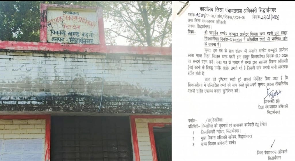 एडीओ पंचायत कार्यालय बढ़नी में फैले भ्रष्टाचार की शिकायत के बाद जिला पंचायत राज अधिकारी ने अपर जिला पंचायतराज अधिकारी को जांच सौंपी है। प्राप्त जानकारी के मुताबिक बीते कुछ दिनों पहले कार्यालय में तैनात एक कर्मचारी जनार्दन कुमार पाण्डेय ने सहायक विकास अधिकारी के ऊपर गम्भीर आरोप लगाते हुए जिलाधिकारी व मुख्य विकास अधिकारी सहित तमाम उच्चाधिकारियों को लिखित शिकायती पत्र भेजकर न्याय की गुहार लगाई थी। पीड़ित कर्मचारी ने भेजे गये शिकायती पत्र में लिखा था कि वह एडीओ पंचायत कार्यालय बढ़नी ब्लाक में कम्प्यूटर आपरेटर के पद पर कार्यरत है। सहायक विकास अधिकारी (पं0) के द्वारा अक्टूबर माह में धन का मांग किया गया था, जिसे मेरे द्वारा नहीं दिये जाने पर मुझे तहसील पर सम्बद्ध कर दिया गया है। विकास खण्ड में सहायक विकास अधिकारी के कार्यालय में सफाई कर्मी राकेश कुमार एवं राजकिशोर मौर्या को सम्बद्ध किया गया है, जो विकास खण्ड के ही दो ग्राम पंचायतों में तैनात हैं। जन्म-मृत्यु प्रमाण-पत्र, परिवार रजिस्टर नकल आदि के नाम पर इन्हीं सफाई कर्मियों के माध्यम से सहायक विकास अधिकारी (पं0) द्वारा धन उगाही की जा रही है। सहायक विकास अधिकारी (पं0) के कार्यालय में ना ही मुझे बैठने की अनुमति दी जा रही है और न ही कार्य करने के लिए कम्प्यूटर-सेट दिया जा रहा है। जिसके सम्बन्ध में जिला पंचायत राज अधिकारी वाचस्पति झा द्वारा अपर जिला पंचायत राज अधिकारी को जनार्दन पाण्डेय कम्प्यूटर आपरेटर स्वच्छ भारत मिशन विकास खण्ड बढनी द्वारा शिकायती पत्र में उल्लिखित तथ्यों की जांचकर अपनी सुस्पष्ट आख्या शीघ्र साक्ष्यों सहित उपलब्ध कराने का दिशा-निर्देश जारी किया गया है।