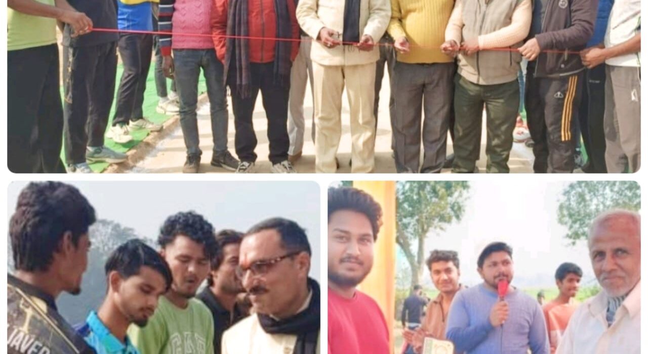 विकास क्षेत्र शोहरतगढ़़ अन्तर्गत ग्राम पंचायत लुचुईया टोला नड़ौरा गांव के खेल मैदान में आयोजित नड़ौरा प्रीमियर लीग क्रिकेट टूर्नामेंट के पांचवें दिन का भव्य शुभारम्भ किया गया। उद्घाटन समारोह में मुख्य अतिथि युवा समाजसेवी कृष्ण कुमार पाण्डेय व विशिष्ट अतिथि शिक्षक राकेश कुमार जायसवाल ने फीता काटकर प्रतियोगिता का उद्घाटन किया। पांचवें दिन का पहला मुकाबला खुनुवां और अलीगढ़वा के बीच खेला गया। टॉस जीतकर खुनुवां ने पहले गेंदबाजी करने का निर्णय लिया। पहले बल्लेबाजी करते हुए अलीगढ़वा ने निर्धारित 9.3 ओवरों में 73 रन बनाकर ऑल आउट हो गई। अलीगढ़वा टीम के समीर ने उत्कृष्ट बल्लेबाजी करते हुए 22 रन बनाये। खुनुवां टीम के अमित ने 04 विकेट व संदीप ने 3 विकेट लेकर बेहतरीन प्रदर्शन किया। दूसरी पाली में 74 रनों के लक्ष्य का पीछा करने उतरी खुनुवां की टीम संघर्ष के बावजूद 61 रन पर सिमट गई। अलीगढ़वा टीम के सैय्यद ने शानदार गेंदबाजी करते हुए 03 ओवर में मात्र 08 रन देकर 4 विकेट झटके और अपने टीम को जीत दिलाई। उत्कृष्ट प्रदर्शन के लिए सैय्यद को मैन ऑफ द मैच चुना गया, जिन्हें पुरस्कार मुख्य अतिथि कृष्ण कुमार पाण्डेय द्वारा प्रदान किया गया। इसी क्रम में दूसरे मैच का मुकाबला एनसीसी और झण्डेनगर की बीच खेला गया। जिसमें टास जीतकर कर बल्लेबाजी करने आई झण्डेनगर की टीम ने अपने खराब प्रदर्शन के कारण कुल 10 ओवर में 08 विकेट खोकर मात्र 48 रन ही बना पायीं। जबकि मैच के दूसरी पाली में बल्लेबाजी करने आई एनसीसी की टीम ने 03 ओवर में 02 विकेट के नुकसान पर ही लक्ष्य को प्राप्त कर लिया और जीत अपने खाते में दर्ज कर ली। एनसीसी टीम के सब्बू ने शानदार गेंदबाजी करते हुए 03 विकेट लिये और रिजवान ने शानदार बल्लेबाजी करते हुए चौंके-छक्के लगाकर 41 रन बनायें, जिससे मैन ऑफ द मैच एनसीसी टीम के रिजवान को दिया गया। दूसरे मैच के मुकाबले में मैन आफ द मैच समाजसेवी विनोद कुमार उपाध्याय के हाथों से दिया गया। इस अवसर पर मुख्य अतिथि कृष्ण कुमार पाण्डेय ने खिलाड़ियों का उत्साहवर्धन करते हुए कहा कि ग्रामीण क्षेत्र के युवाओं में प्रतिभा की कोई कमी नहीं है। इस तरह की खेल प्रतियोगिताएं युवाओं में अनुशासन, टीम भावना और भाईचारे को बढ़ावा देती हैं। वहीं टूर्नामेन्ट कमेटी के अध्यक्ष अमित उपाध्याय, उपाध्यक्ष गोलू उपाध्याय तथा कमेटी सदस्य संदीप, निखिल, निलेश, स्कंद, सुंदरम, साईराज, रघुराज आदि ने सफल आयोजन पर प्रसन्नता व्यक्त करते हुए कहा कि यह टूर्नामेंट क्षेत्र की उभरती खेल प्रतिभाओं को एक मजबूत मंच प्रदान करेगा। टूर्नामेंट के आयोजक अंशिका फर्टिलाइजर एण्ड ट्रेडर्स के प्रोपराइटर विवेक उपाध्याय एवं समाजसेवी संजय मिश्रा रहे। वहीं आयोजित टूर्नामेंट में राज