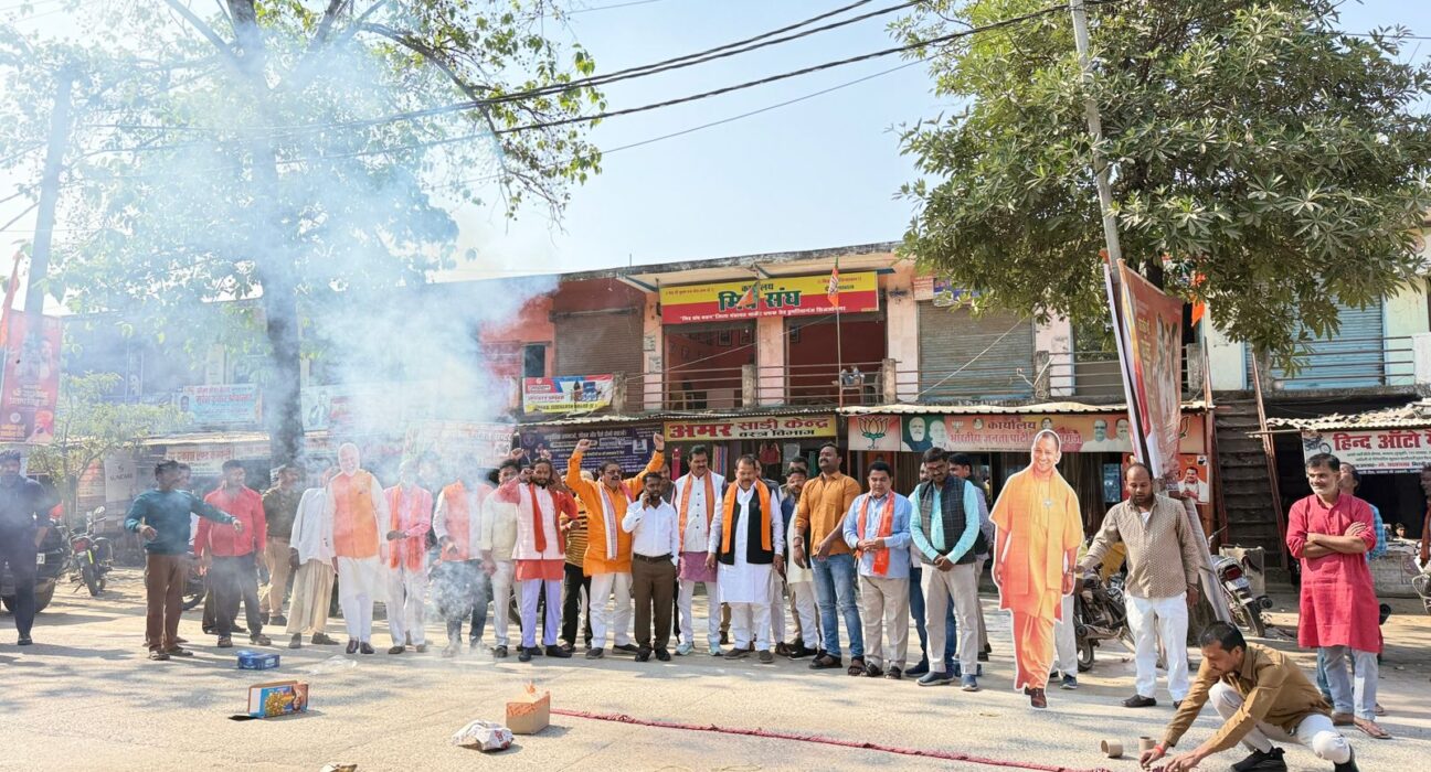 सिद्धार्थनगर जिला मुख्यालय स्थित भाजपा कार्यालय पर जिलाध्यक्ष भाजपा कन्हैया पासवान ने पार्टी नेताओं-पदाधिकारियों के साथ पटाखा जलाकर एक दूसरे को मिठाई खिलाकर जीत का जश्न मनाया
