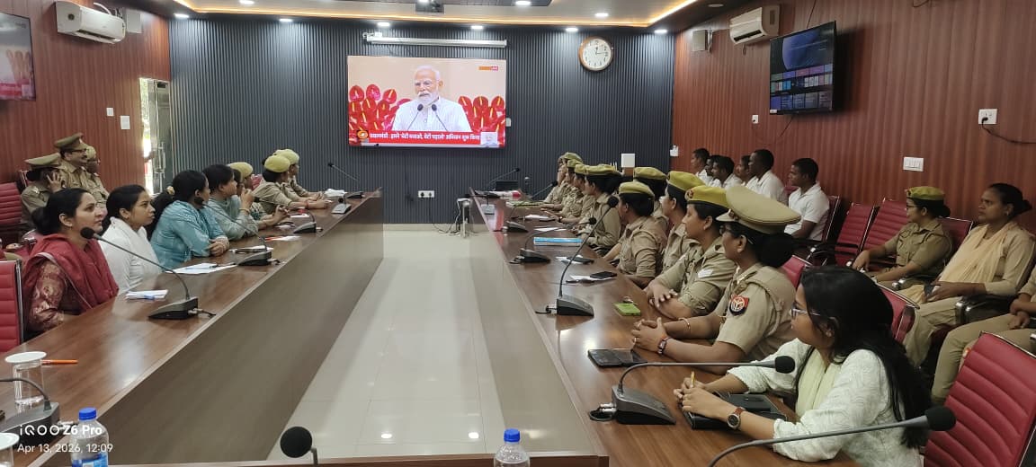 आज दिनांक 13.04.2026 को माननीय प्रधानमंत्री जी द्वारा महिलाओं के सशक्तिकरण, सम्मान एवं जागरूकता के उद्देश्य से “नारी शक्ति वंदन सम्मेलन” का आयोजन किया गया । “नारी शक्ति वंदन सम्मेलन” कार्यक्रम के अवसर पर माननीय प्रधानमंत्री जी द्वारा देशभर की महिलाओं को संबोधित किया गया । इस महत्वपूर्ण कार्यक्रम का सीधा प्रसारण जनपदीय पुलिस द्वारा थाने/चौकी/पुलिस लाइन में ऑनलाइन माध्यम से जुड़कर सामूहिक रूप से सुना गया । कार्यक्रम के दौरान पुलिस अधिकारियों एवं कर्मचारियों ने उत्साहपूर्वक सहभागिता करते हुए प्रधानमंत्री के विचारों एवं महिला सशक्तिकरण से संबंधित संदेशों का श्रवण किया । अपने संबोधन में माननीय प्रधानमंत्री ने महिलाओं की समाज, परिवार एवं राष्ट्र निर्माण में अहम भूमिका को रेखांकित करते हुए उन्हें आत्मनिर्भर एवं सशक्त बनाने की दिशा में सरकार द्वारा चलाई जा रही विभिन्न योजनाओं की जानकारी दी । उक्त संबोधन को जनपदीय पुलिस अधिकारियों/कर्मचारियों द्वारा उत्सुकता से सुना गया तथा कार्यक्रम के माध्यम से उपस्थित महिलाओं को प्रेरित करते हुए उन्हें अपने अधिकारों के प्रति जागरूक रहने तथा समाज में सशक्त भूमिका निभाने हेतु प्रोत्साहित किया गया ।