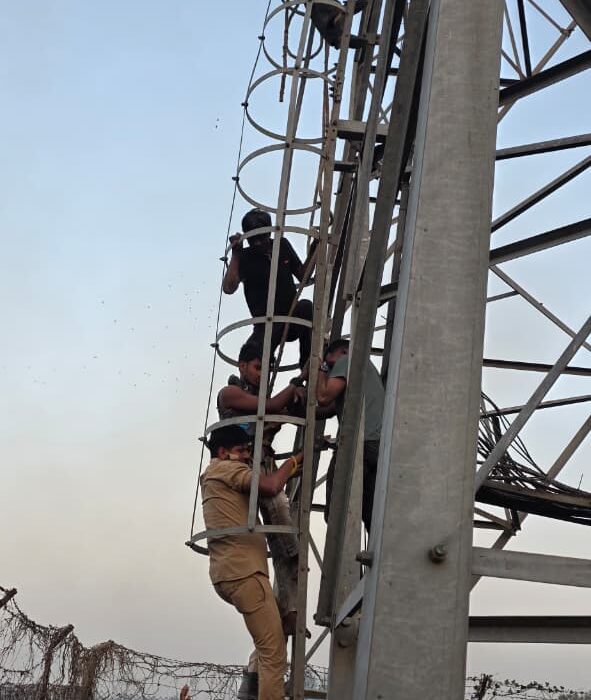 थाना खेसरहा पुलिस द्वारा थानाक्षेत्र के लक्ष्मीगंज तिराहे के पास स्थित मोबाइल टावर पर चढ़े युवक को सकुशल उतार कर युवक की जान बचाई गयी