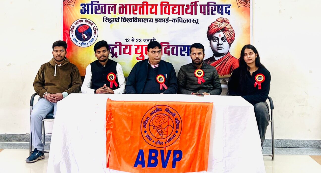 आज अखिल भारतीय विद्यार्थी परिषद सिद्धार्थ विश्वविद्यालय इकाई द्वारा स्वामी विवेकानंद जी के जन्म जयंती के अवसर पर “स्वामी विवेकानंद – Gen Z के लिए सन्देश” विषय पर संगोष्ठी का आयोजन किया गया एवं विश्वविद्यालय परिसर में छात्र -छात्राओं में शैक्षिक नवाचार को बढ़ावा देने हेतु “बुद्ध स्वाध्याय मंडल” का शुभारम्भ किया गया। विषय विषय विशेषज्ञ के रूप में सहायक आचार्य डॉ प्रदीप पाण्डेय उपस्थित रहे। संगोष्ठी में मुख्य अतिथि के रूप में अखिल भारतीय साहित्य परिषद के जिला महामंत्री एवं सहायक आचार्य डॉ जय सिंह यादव ने विद्यार्थियों को सम्बोधित करते हुए कहा की “वर्तमान सामाजिक परिवेश में स्वामी विवेकानंद का जीवन दर्शन ही युवाओं को मार्गदर्शन करने का क्षमता रखता है।” युवाओं को स्वामी जी के वेदांत दर्शन को अपने जीवन में आत्मसात करने की आवश्यकता है। प्रवासी के रूप में उपस्थित गोरक्ष प्रान्त के सविष्कार संयोजक आदित्य प्रताप सिंह ने कहा की “समाज मे अखिल भारतीय विद्यार्थी परिषद ही ऐसा एकमात्र संगठन है जिसने स्वामी विवेकानंद जी के जीवन को सामान्य विद्यार्थियों के बीच में पहुँचाने का कार्य किया। विद्यार्थी परिषद ने विवेकानंद जी के जीवनी से संबंधित विभिन्न अभियानों को अपने स्थापना काल से संचालित करते आया है। अखिल भारतीय विद्यार्थी परीषद के नेपाली विद्यार्थी कार्य के राष्ट्रीय संयोजक ने सम्बोधित करते हुए कहा की “ज़ब आज Gen -Z के बीच में विभिन्न प्रकार के नकारात्मक विमर्श भारत के शैक्षिक परिसरों में खड़ा किया जा रहा तो ऐसे समय में स्वामी विवेकानंद जी की प्रासंगिकता और अधिक बढ़ जाती है। स्वामी विवेकानंद जी का राष्ट्र प्रेम भारत के युवाओं के लिए अनुकरणीय है । कार्यक्रम का संचालन इकाई मंत्री हिमांशु अग्रहरी व आभार ज्ञापन इकाई उपाध्यक्ष रुपाली कुमारी ने किया। संगोष्ठी में मुख्य रूप से विभाग संगठन मंत्री अमर्त्य सुंदरम्,चंद्र किशोर, कुशल, अंकिता राव, दीपाली मौर्या आदि प्रमुख रूप से उपस्थित रहे ।